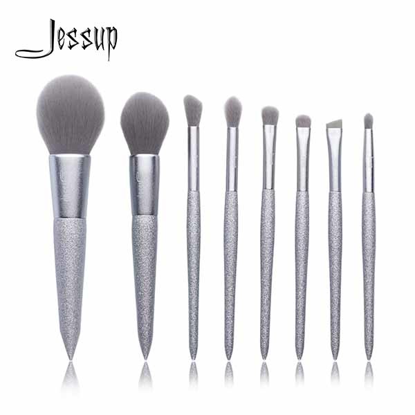 Jessup 8pcs Shining Party Silver Basic Makeup Brushes Set Faux Squirrel Hair T265